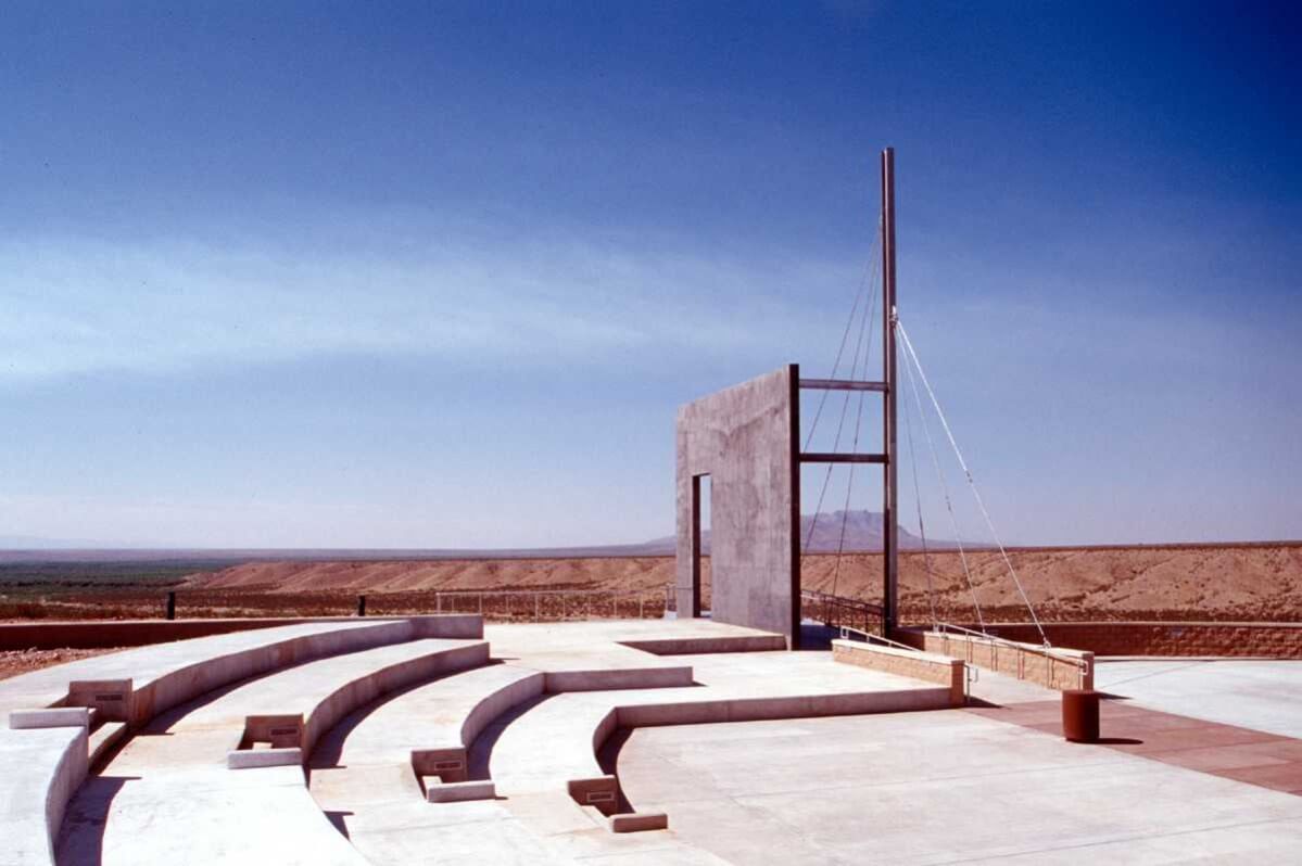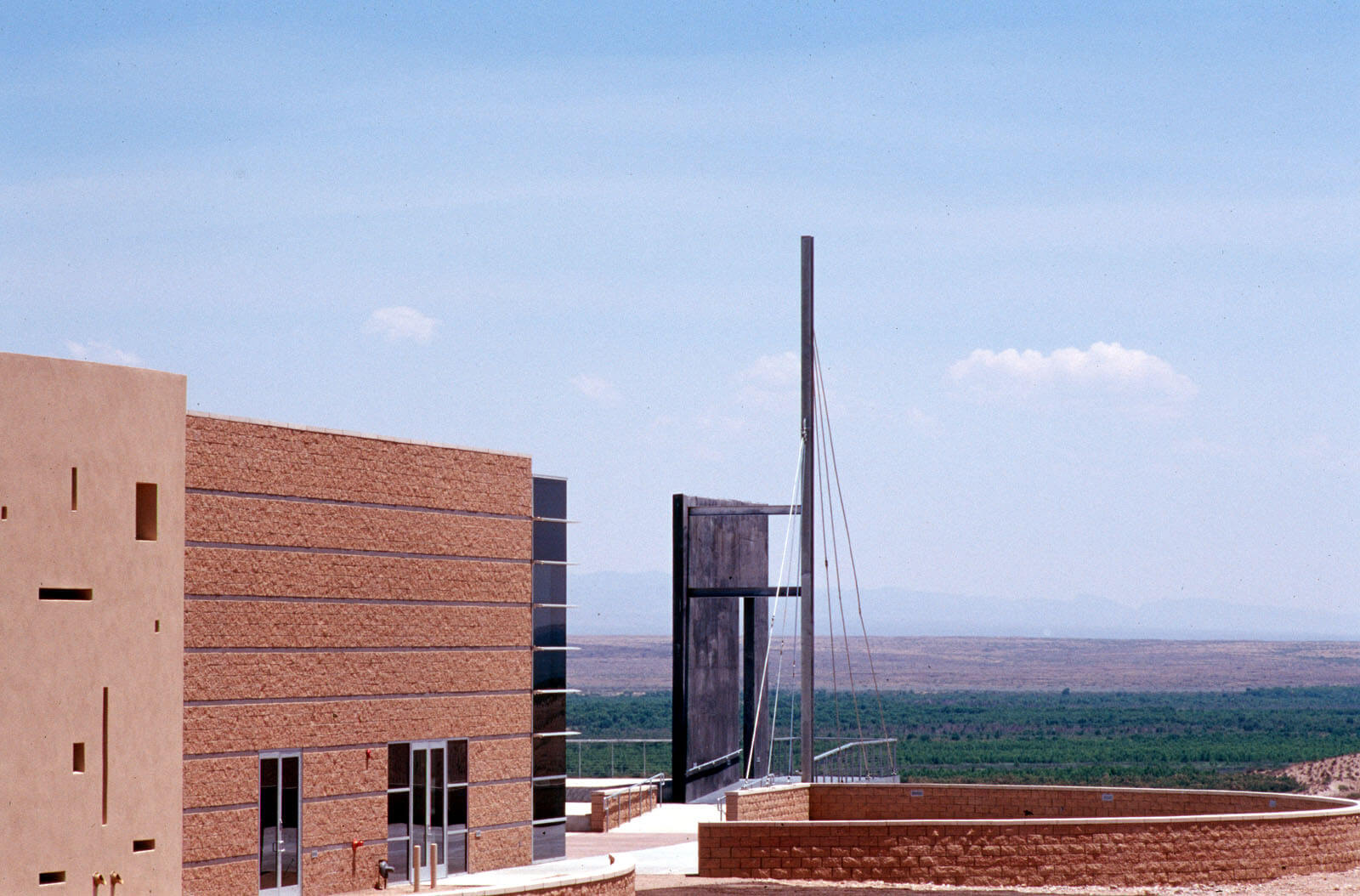 Sited in the southern desert of central New Mexico, this sculpture marks the entrance to the El Camino Real Historic Trail Site. Originally planned as a joint effort between Mexico and the United States, the Historic Trail Site contains award winning exhibits, an interpretive learning center, and artifacts presenting the history and heritage of El Camino Real de Tierra Adentro. The Historic Trail Site itself sits along the original Camino Real and is a stunning work of architecture.